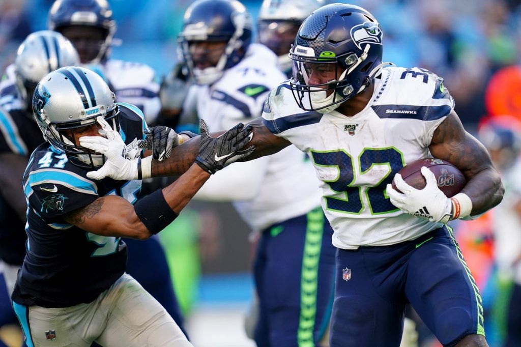 Chris Carson had a career night rushing for 133 yards and 2 touchdowns averaging 5.5 yards per carry